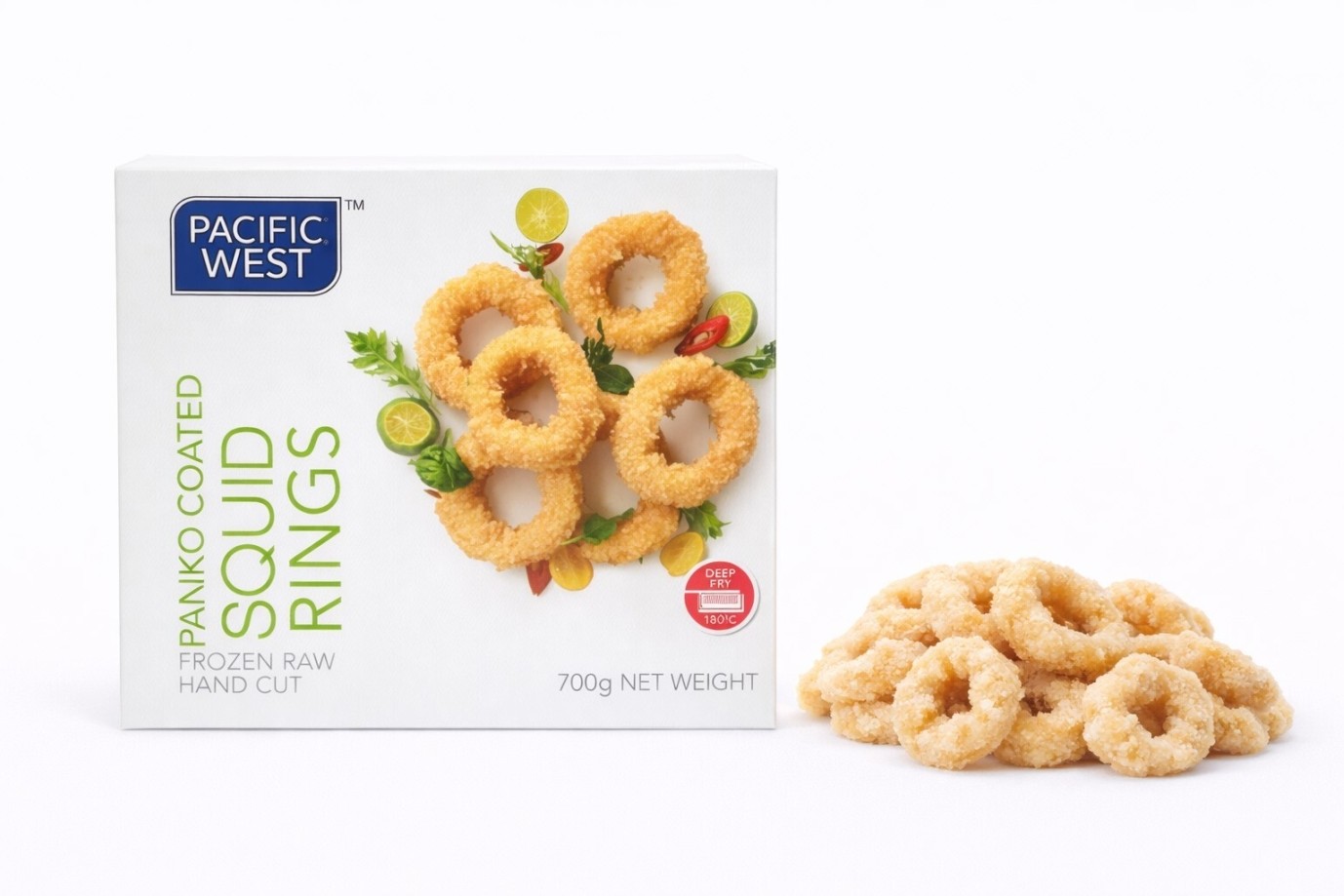 Squid (Molluscs) (70%), Breadcrumb (20%) [Wheat Flour, *Palm Oil, Sugar, Salt], Batter (20%) [Wheat Flour, Water, Thickeners (E1404, E1420), Sugar, Garlic, Raising Agents (E450, E500), Pepper, Soya Sauce Powder (Soya Bean, Salt, Wheat Flour, Water), Salt, Yeast Extract, Soy Flour] *RSPO Certified