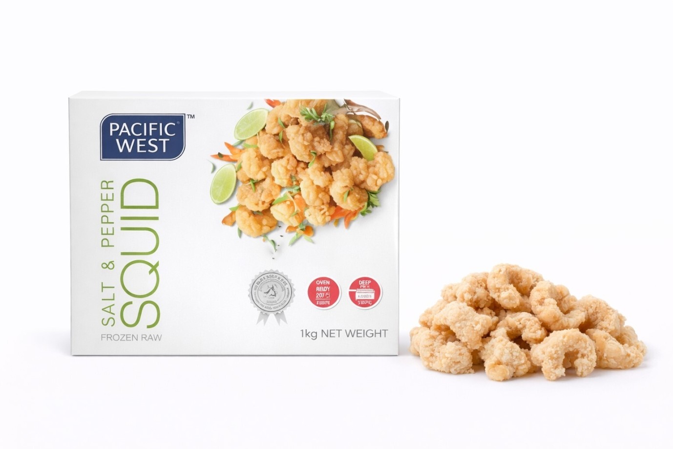 Squid (Molluscs) (60%), Coating (Wheat Flour, Water, *Palm Oil, Thickener (E1412), Sugar, Salt (1.4%), Pepper (1%), Raising Agents (E450, E500), Yeast Extract, Spices, Soya Sauce Powder (Soya Bean, Salt, Wheat Flour, Water), Colour (E160c) *RSPO Certified