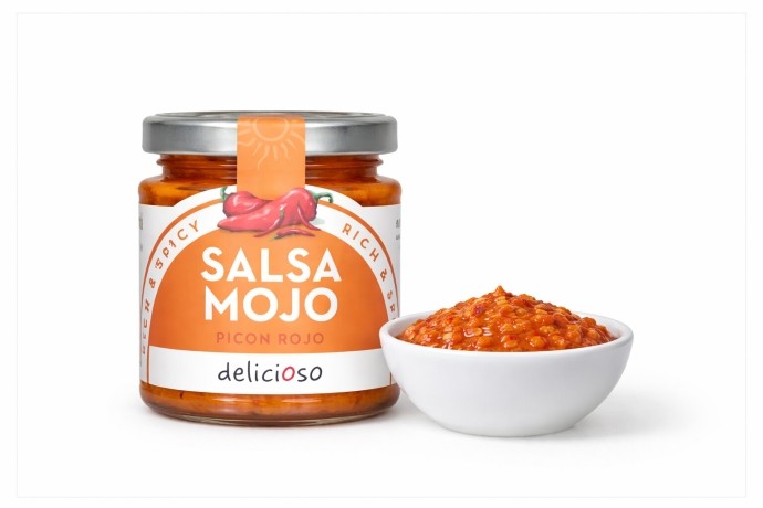 Piquillo peppers, extra virgin olive oil, water, purple garlic (purple garlic, salt, citric acid), sherry vinegar, sugar, salt, cornflour, hot Spanish paprika, red chillies, cumin, and emulsifier: xanthan gum